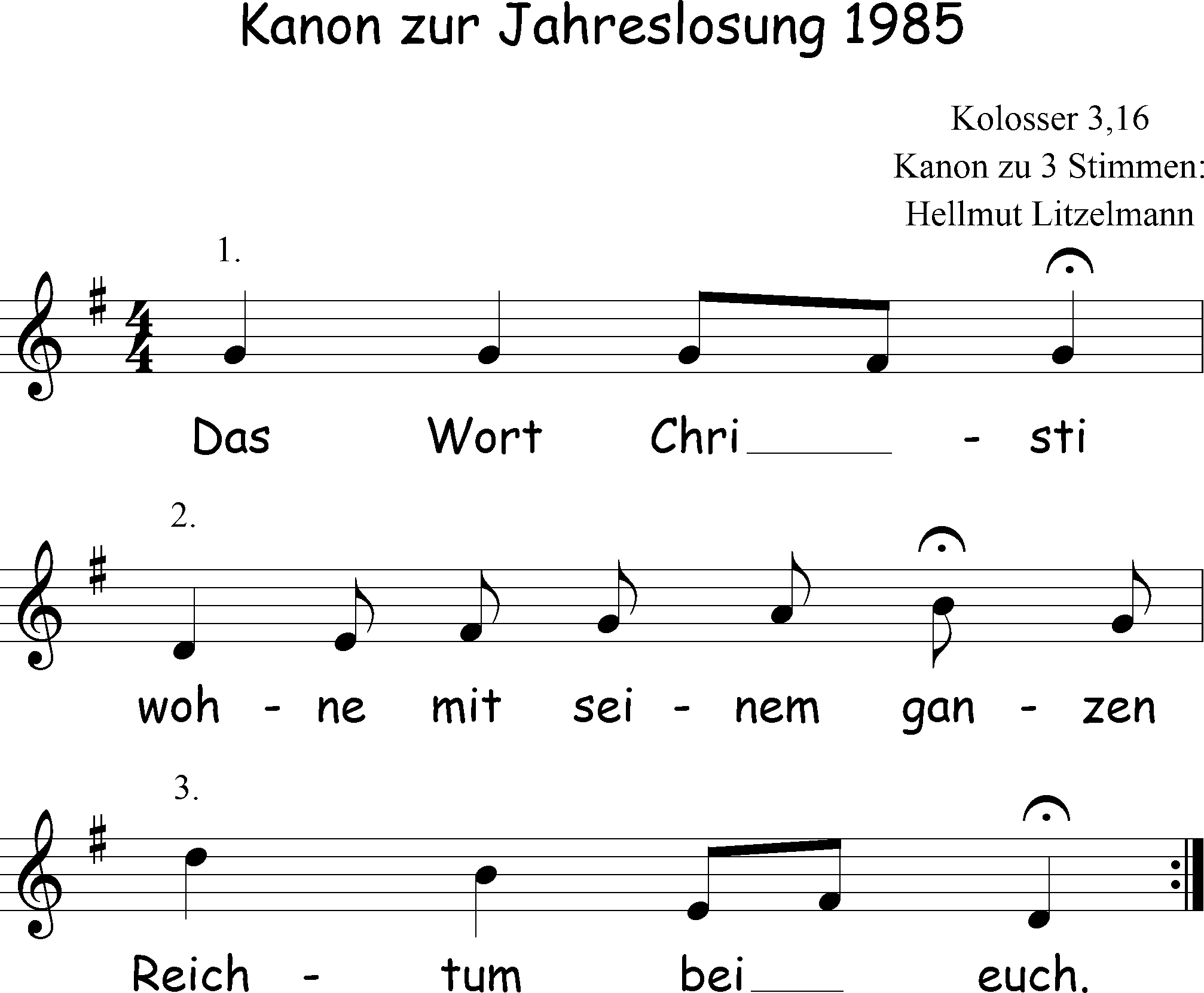 Kanons zur Jahreslosung 1985 des Verbands für Evangelische