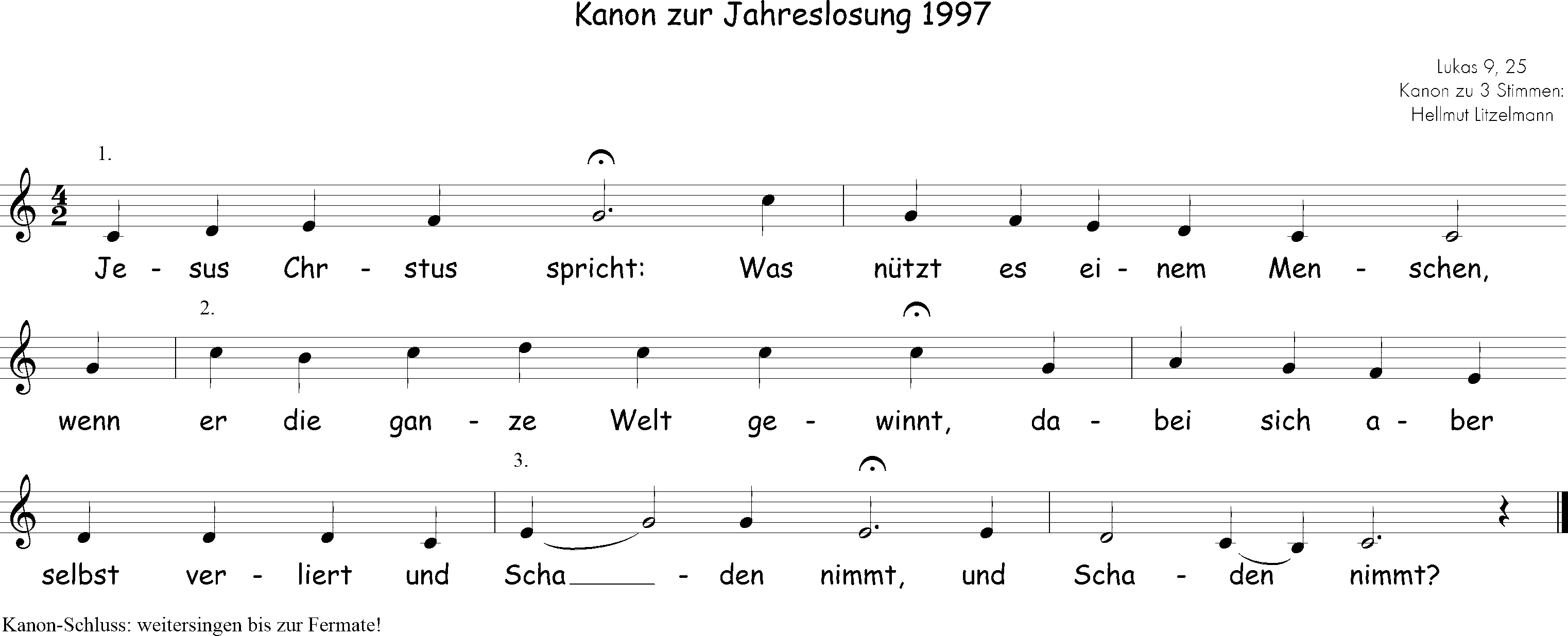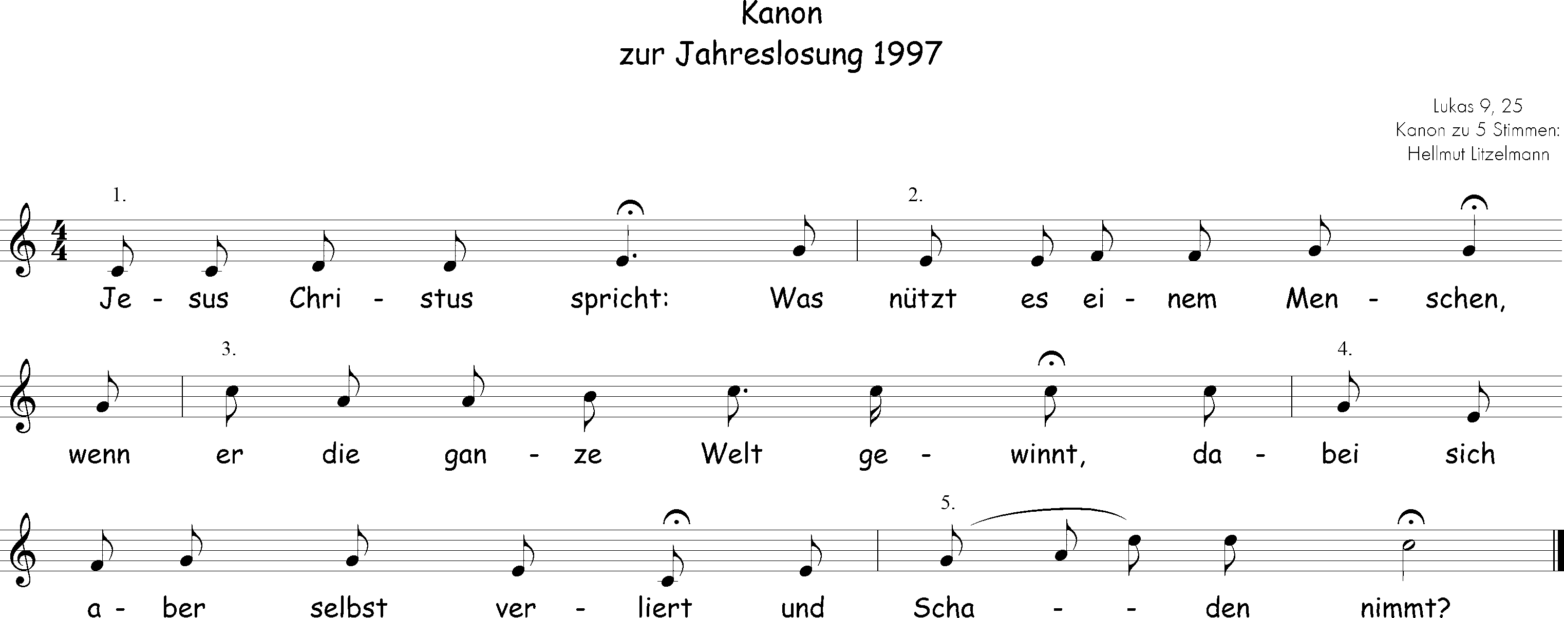 Kanons zur Jahreslosung 1997 des Verbands für Evangelische