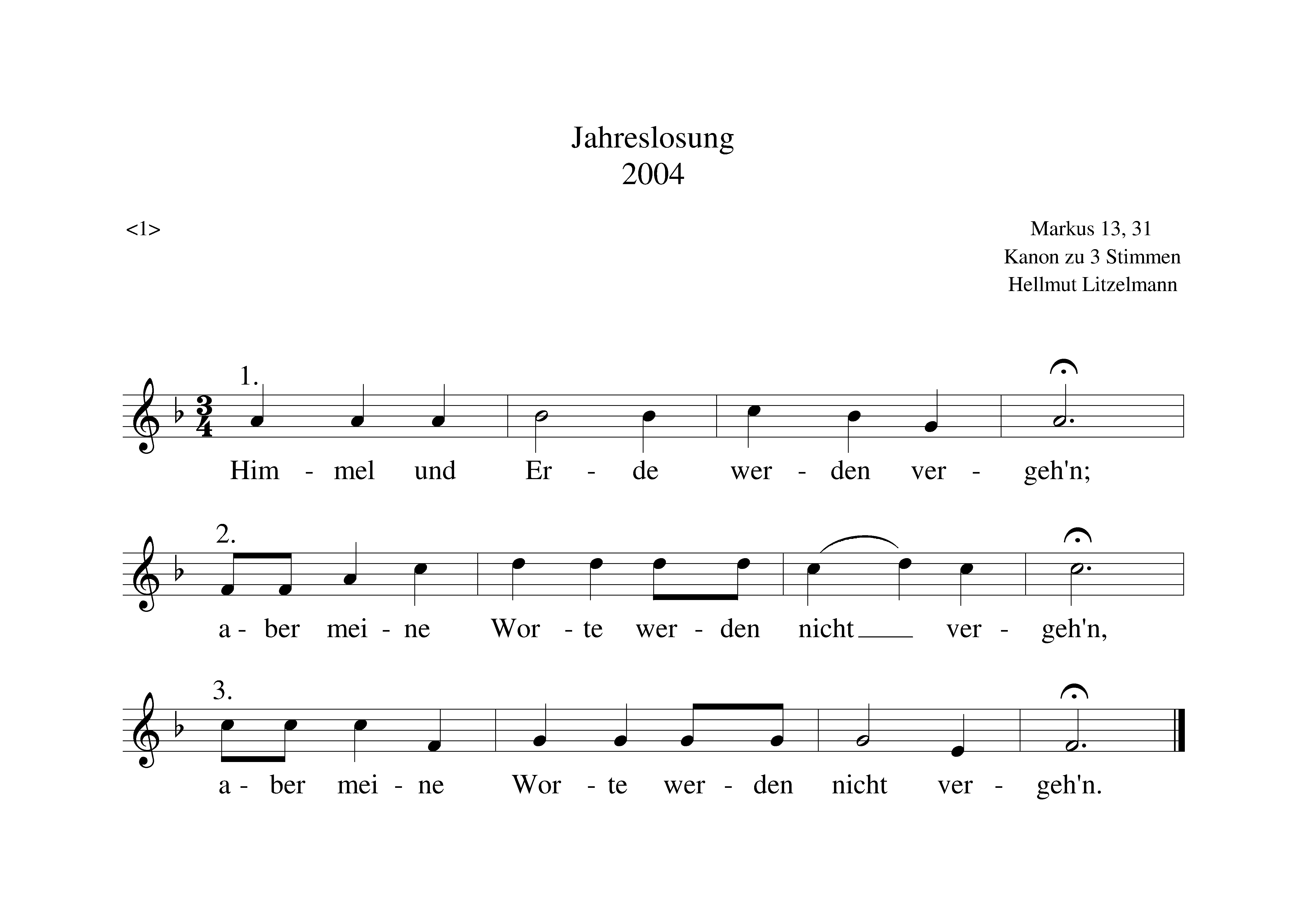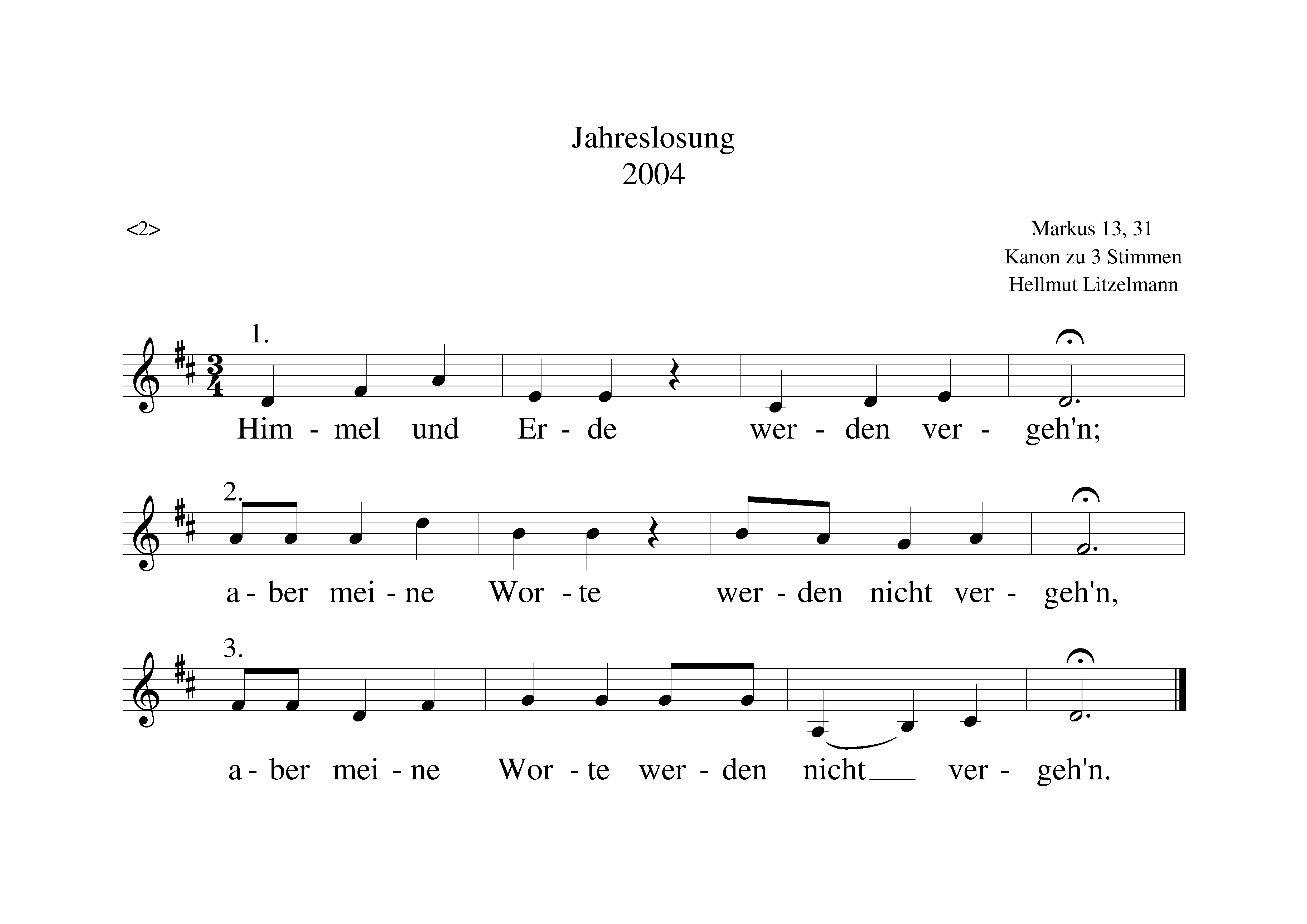 Kanons zur Jahreslosung 2004 des Verbands für Evangelische