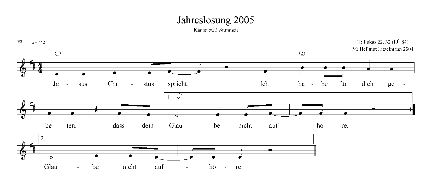 Kanons zur Jahreslosung 2005 des Verbands für Evangelische