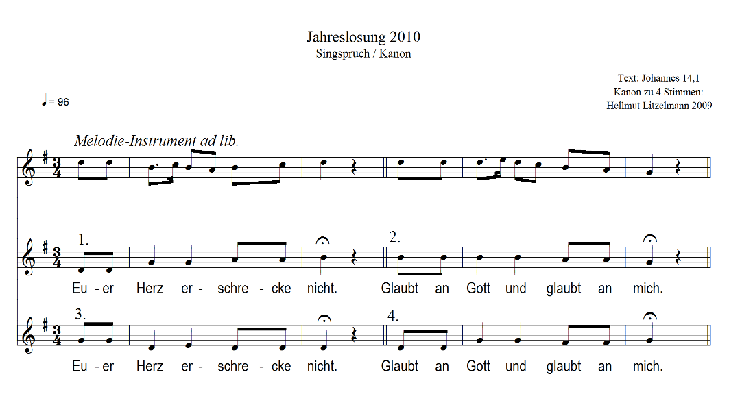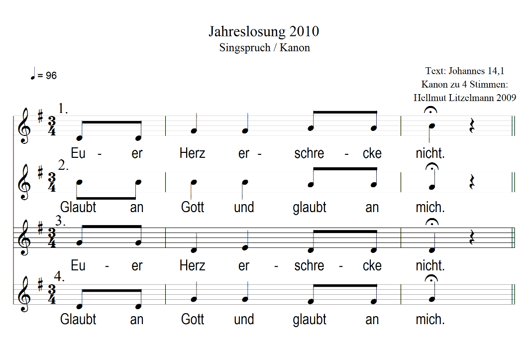 Kanons zur Jahreslosung 2010 des Verbands für Evangelische